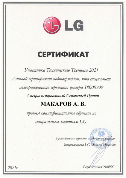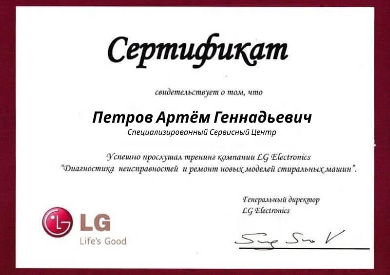 Каждый мастер в нашей компании имеет сертификаты, подтверждающие его квалификацию. Это не просто бумажки — это доказательство того, что специалист прошел обучение и знает, как работать с современными моделями стиральных машин. Сертификаты — это ваша уверенность в том, что ремонт будет выполнен правильно, а стиральная машина прослужит долго.